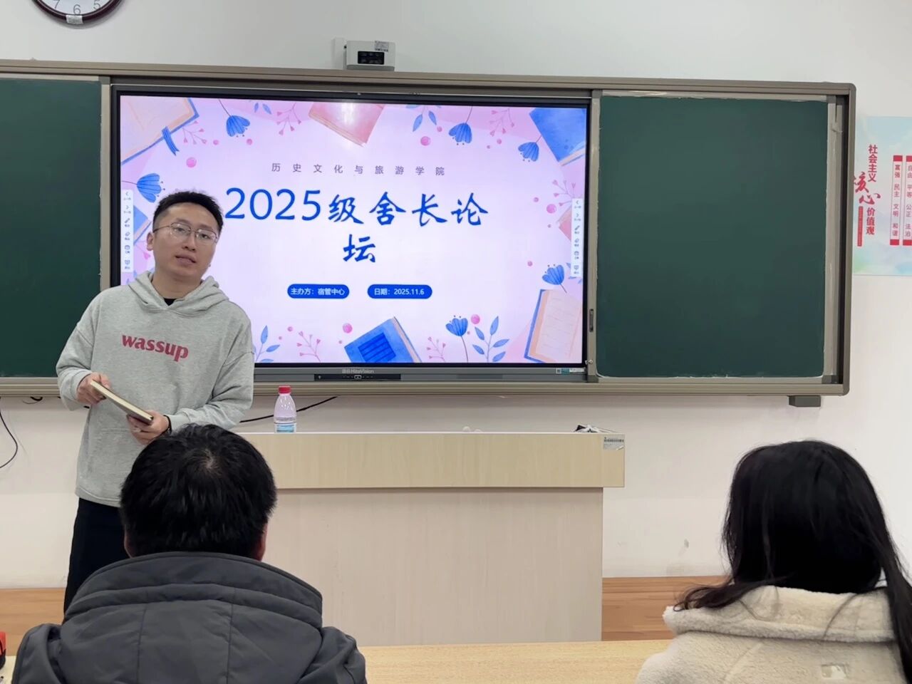 为分享宿舍管理经验,提升舍长责任意识与实操能力,营造安全和谐的住宿环境,11月6日,公司于6#A305教室举办2025级舍长论坛会。学院辅导员王旭辉、2025级宿舍长参加本次论坛会。 王旭辉从宿舍建设角度出发,为舍长提供实用的宿舍管理建议和方法。他指出,宿舍是一个集体,舍长应当发挥桥梁纽带的作用,主动协调室友之间的关系,增强宿舍的凝聚力和向心力。在宿舍安全和卫生方面,王旭辉详细介绍宿舍卫生检查细则,重点强调用电安全规范与违禁品管控要求,并针对宿舍长提出的疑问进行现场解答,提供切实可行的解决方案。 宿管中心负责人详细介绍宿舍管理的各项规章制度,包括宿舍检查细则,违纪处理,消防安全注意事项等多个方面,具体全面地帮助宿舍长理清宿舍检查内容及执行标准。同时,她积极回应舍长诉求,强调遵守规章制度的重要性,并呼吁舍长以身作则,营造有序安全温馨的宿舍环境。 论坛会结束后,2025级宿舍长纷纷表示,此次舍长论坛会为自己日后管理宿舍明晰方向,进一步强化集体意识,未来将以实际行动构建温馨和谐的宿舍氛围。 本次舍长论坛会的顺利举办,不仅有利于切实解决员工在作息协调、卫生维护、矛盾化解等方面的困扰,使其拥有更和谐舒适的宿舍生活环境,而且有利于培养员工的自律意识与责任意识,为新学期宿舍管理工作的有序开展奠定基础。 (供稿:周琦鑫 张诺 陆雅馨 摄影:张诺 陆雅馨 初审:陆雅馨 复审:宋佳珊 终审:尤姗姗)